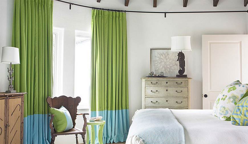 Однотонные занавески могут также сделать вашу спальню органичной, при этом в неё привнести необходимый настрой.