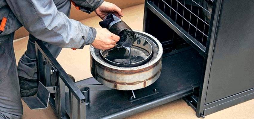 Это трудоемкий и затратный процесс, оправданный только там, где котел работает в постоянном режиме для обогрева больших помещений, и его можно постоянно обеспечивать отработкой.