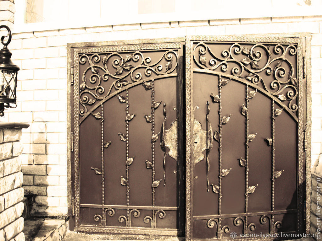 - кованые створки ворот (заводская ковка и эксклюзивные авторские варианты) – стоит дорого, требуется дополнительное утепление.