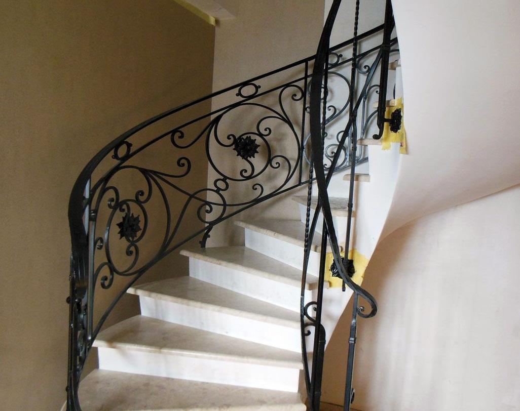 Кованые ограждения для лестниц с забежными ступенями хорошо вписываются в любой интерьер вне зависимости от его стиля