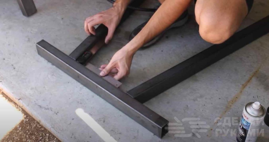 Приступаем к работе. Сначала из профтрубы изготавливается основание крана (опорная часть).
