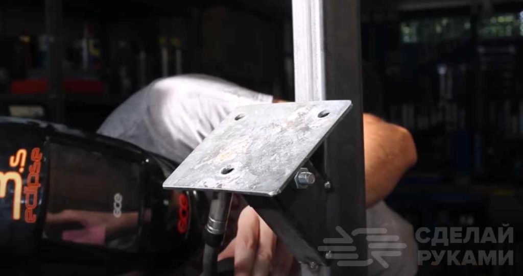 - на них закрепить стальную плиту с помощью болтов «М8»;
