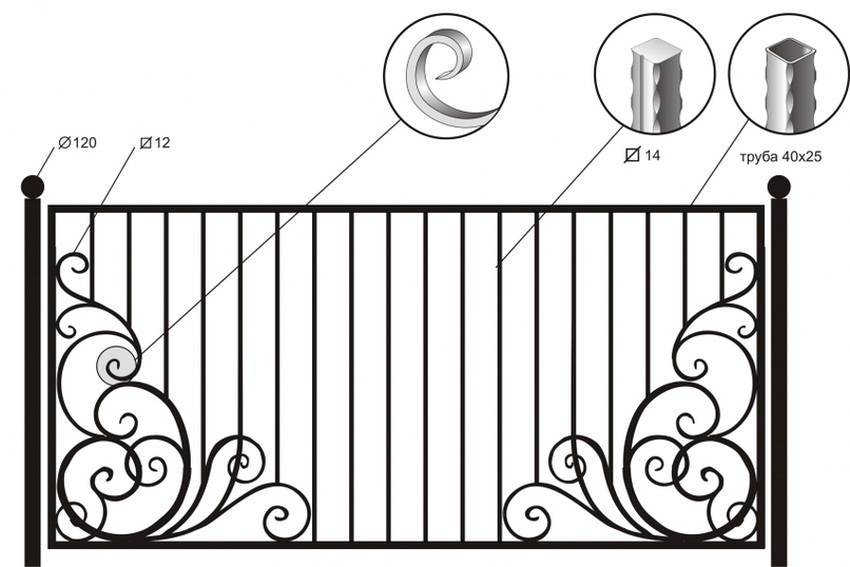 Секции ограждения имеют большой вес. Крепить их следует только к прочным стойкам из металла. Приварить железные конструкции можно к платикам и планкам, вмонтированным в столбы: