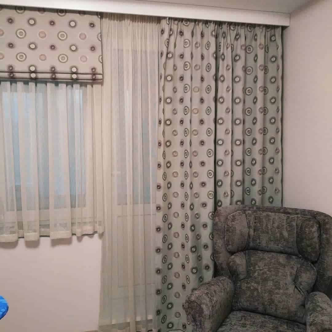 Для пошива штор подойдет натуральная или синтетическая ткань высокого качества.