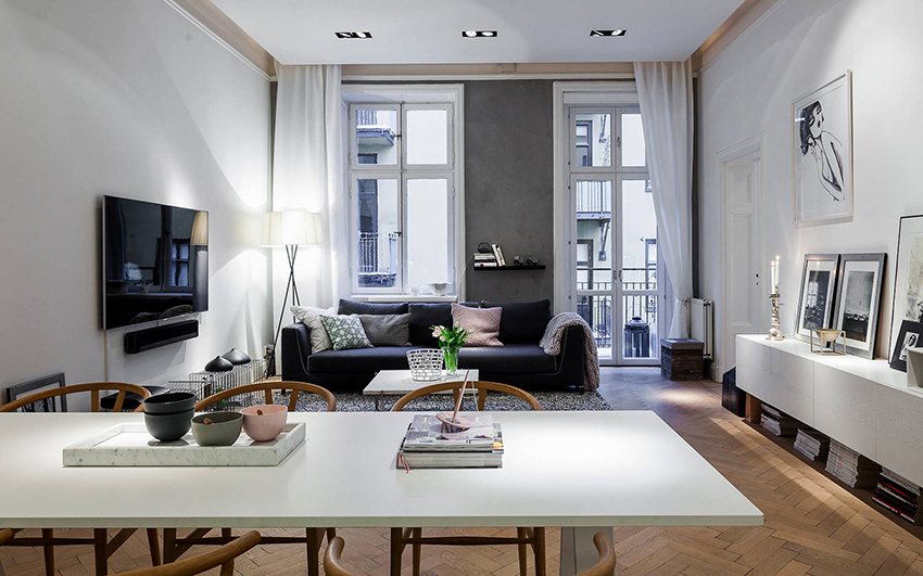 Сочетай разные ткани, создавай из штор яркие акценты. Правильный выбор текстиля – лучшая альтернатива избыточному декору, который не вписывается в концепцию минимализма. Даже самая лаконичная гостиная станет креативной и индивидуальной.