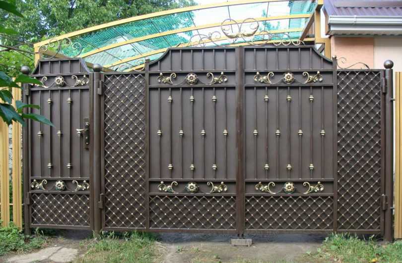 Представляют собой комбинацию глухих и ажурных ворот. Обычно верхняя часть дополняется художественной ковкой и пропускает свет. Нижняя — скрывает от посторонних глаз происходящее на участке.