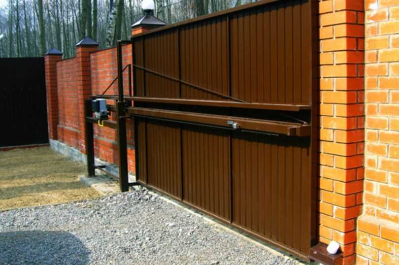 Хоть и на распашные модели можно установить систему автоматического открывания створок, но на откатные ее смонтировать проще. После нажатия кнопки полотно начнет плавно двигаться в сторону. Некоторые владельцы частных домов снабжают ворота дистанционным управлением, чтобы не выходить из автомобиля.