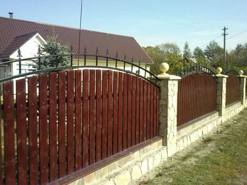 - низкий сплошной каменный заборчик, нарощенный в высоту при помощи дерева или металла;