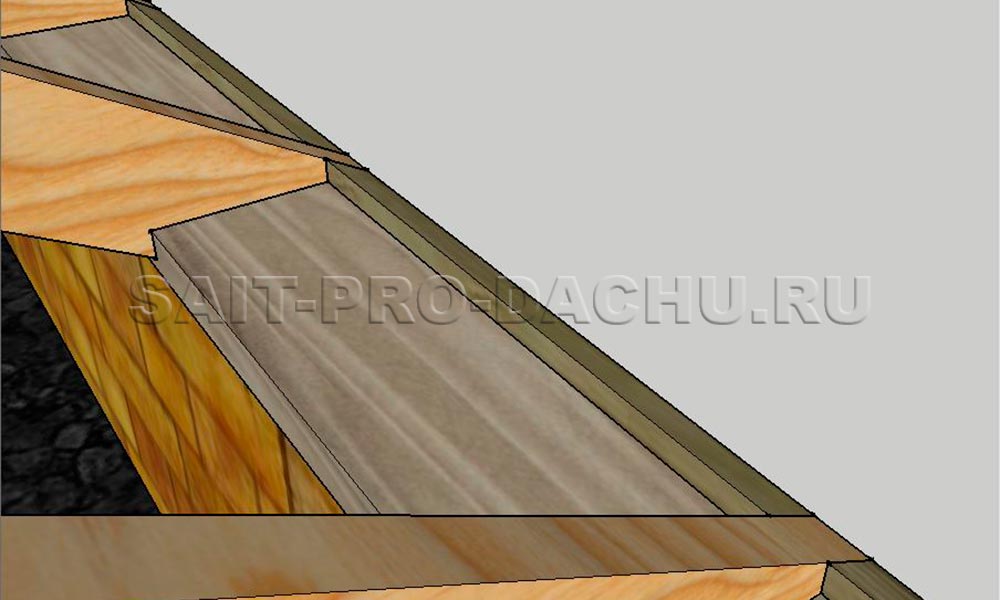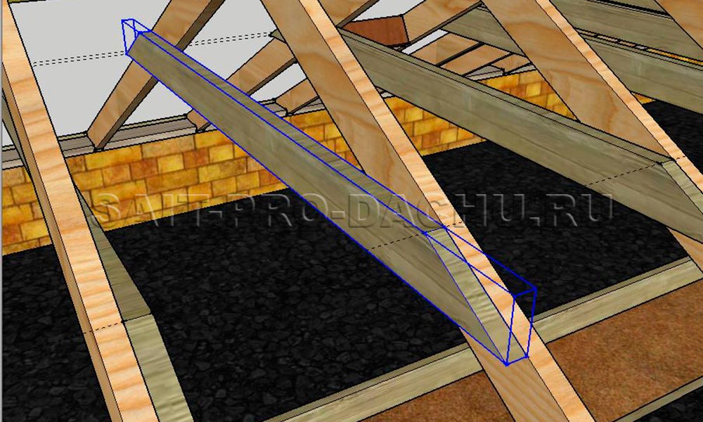 Как видите, стропила прибиваются не по его торцу, а как бы в полдерева, оставляя место для следующего фрагмента прогона.