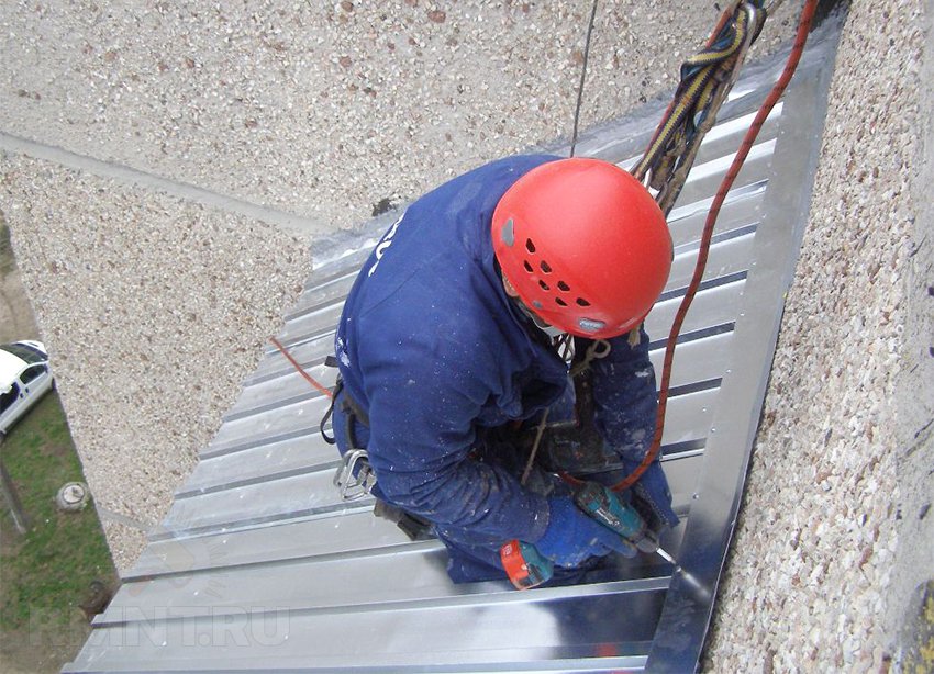 Из таких исключений наиболее распространены укладка и закрепление кровельного покрытия, установка отливов и защита узлов примыканий. Эту скрупулезную работу неподготовленному человеку, находясь на высоте, выполнить сложно. Будет правильнее обратиться к услугам промальпинистов : если вы самостоятельно смонтировали каркас и обрешетку, имеете все необходимые материалы (в т. ч. расходные) и заранее подготовленную схему и технологию укладки, услуги альпинистов обойдутся по минимуму.