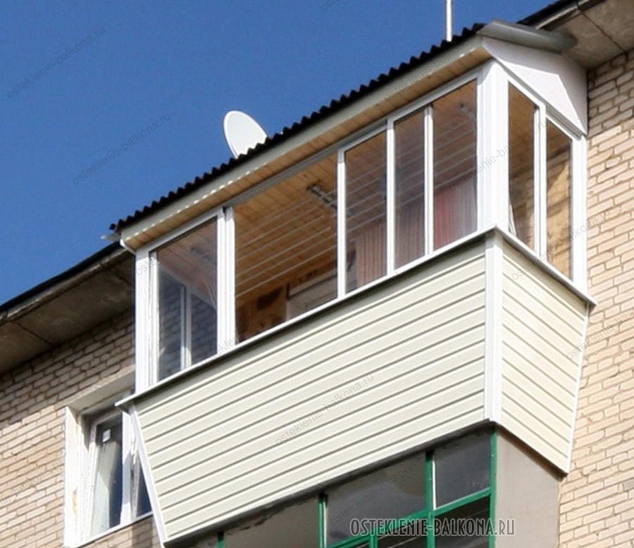 В настоящее время значительным спросом пользуется остекление балконов с крышей в хрущевках. В старых домах в качестве экономичного варианта такую крышу сооружают на базе деревянных опорных ферм с кровлей из широко распространенного кровельного материала — профнастила либо ондулина. Более затратным является оборудование каркаса из металлических замкнутых ферм. Наиболее комфортными в эксплуатации считаются варианты крыш с кровлей из профнастила (с дополнительной шумоизоляцией всей поверхности крыши и ее утеплением), а также из сотового поликарбоната.