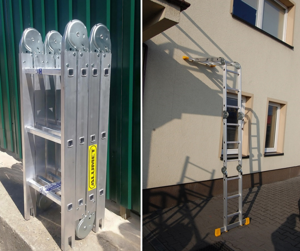 Aluminium – еще один производитель, изготавливающий секционные универсальные лестницы. В каталогах преимущественно недорогие бытовые модели 4х4, 4х5, 4х6. Основной материал – алюминиевый сплав. Он достаточно прочный. Лестница способна выдержать весь до 300 кг. Она станет незаменимым помощником в саду, в частном доме, при ремонте.