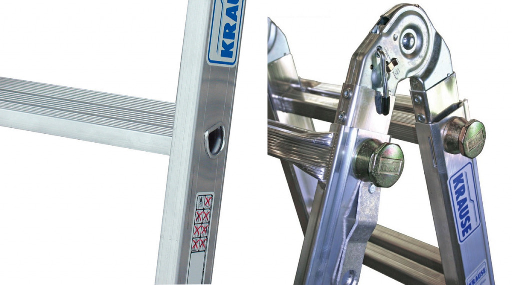 Кроме этого, для профессиональных трансформеров используются высокопрочный материал и часто кованые стальные шарниры. Бытовые лестницы изготавливаются из более тонкого материала, а шарниры чаще всего изготовлены способом штамповки. Но это совсем не влияет на их качество и срок службы.