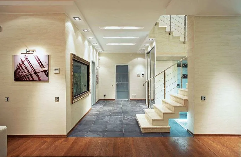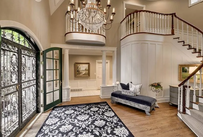 Наиболее популярные интерьерные элементы холла с лестницей: