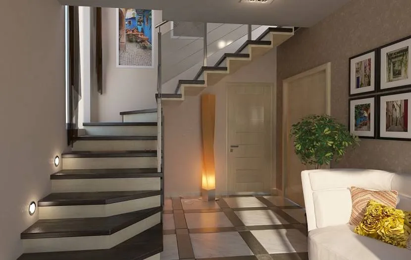 При внутреннем монтаже задача сводится к проектированию такого расположения лестницы, при котором она не мешает жильцам свободно передвигаться по дому. Оптимальным будет устанавливать ее в прихожей или в коридоре.