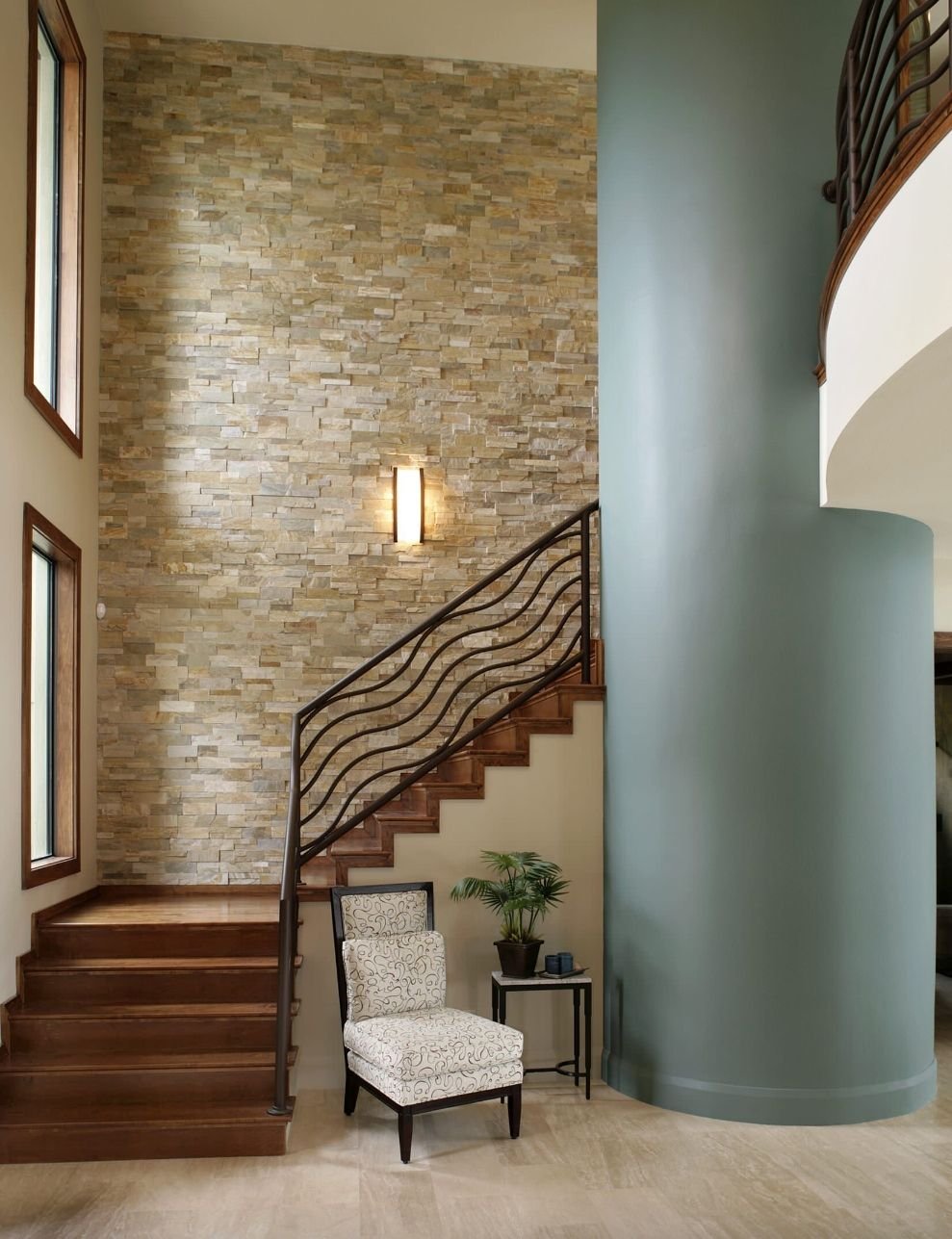 3. Устойчивость к влаге: В зависимости от выбранного материала, декоративный камень может быть устойчивым к влаге, что делает его подходящим для отделки лестниц в помещениях с повышенной влажностью, например, ванной комнате или бассейне.