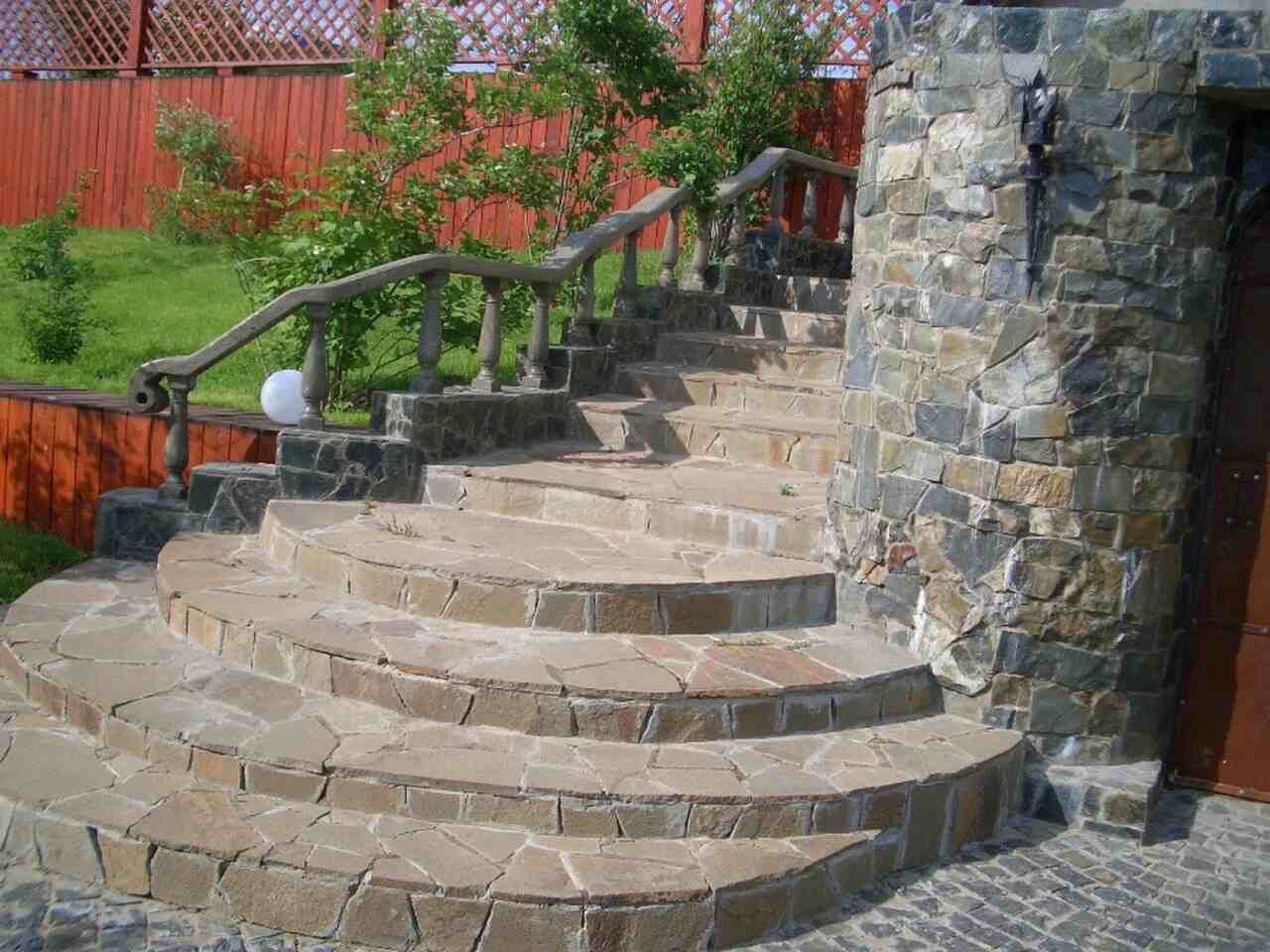 Строения со ступеньками, изготовленными из крошки натуральных камней, прочны и долговечны.