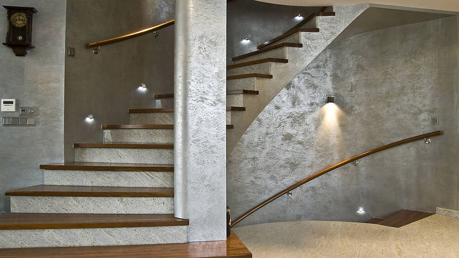 Высокая стоимость натурального камня является основной причиной в поиске альтернативных материалов, которые по внешнему виду и характеристикам не уступали бы ему. Решением такой задачи стало использование в монтаже лестниц искусственных материалов. Готовые варианты изделий представлены в цельном виде или накладками на имеющуюся основу.