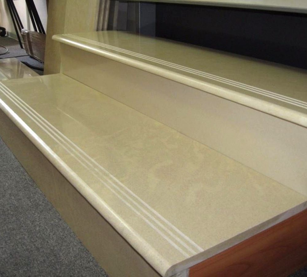 Материал отличается высокой прочностью и простотой укладки. Ступени из керамогранита не требуют дополнительной обработки и могут использоваться для наружного применения как альтернатива тротуарной плитке. Поверхность изделия может быть гладкой или шероховатой в зависимости от того, где будет происходить установка (внутри дома или на улице).