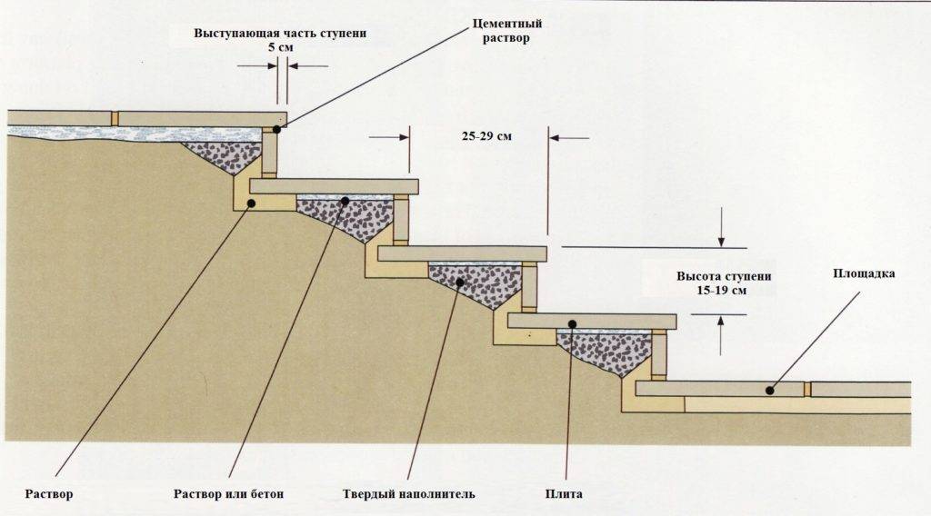 Схема отделки наружной лестницы плитами из природного камняФото-инструкция по установке клинкерных сутпеней