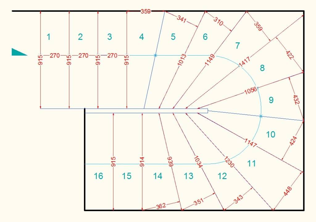 - Все элементы ступеней в виде клина должны входить в квадрат плоскостной проекции.