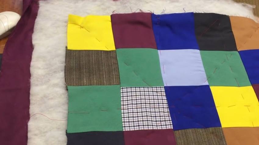 Ткань для подкладки. Следует учитывать, что изнаночная сторона такого одеяла должна быть максимально комфортной, а значит и мягкой. В этом случае предпочтительно использовать материалы природного происхождения. К примеру, многие мастерицы используют натуральную шерсть — именно такое изделие получится максимально комфортным (но и себестоимость будет иметь высокую). Нередко джинсовые лоскуты нашивают на готовые флисовые пледы, которые стоят совершенно недорого.