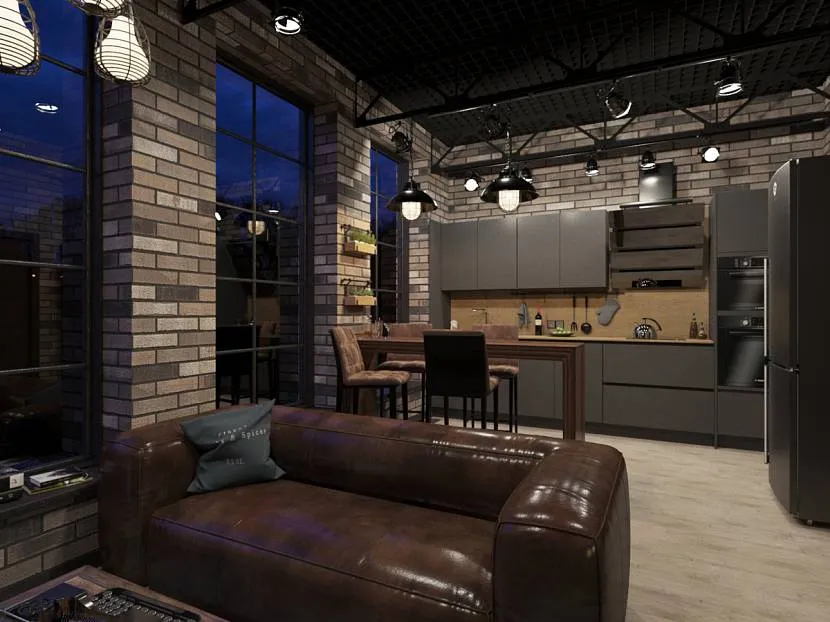 Этот уроженец Соединенных Штатов довольно быстро ассимилировался в нашем климате. Кухня-гостиная в стиле лофт – отличный выбор для творческих личностей, не стремящихся окружить себя вычурностью и роскошью.