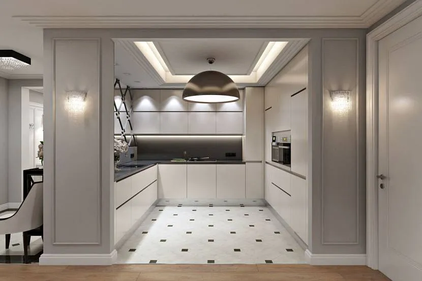 Минус только один – в кухонной зоне белизна быстро потеряет свою свежесть, поэтому будьте готовы к регулярному протиранию.