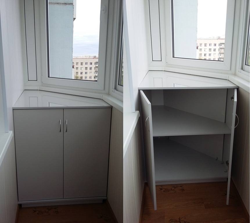 Такая конструкция поможет занять те участки лоджии, которые обычно остаются бесполезными. Хорошо подходит для балконов с углублениями.