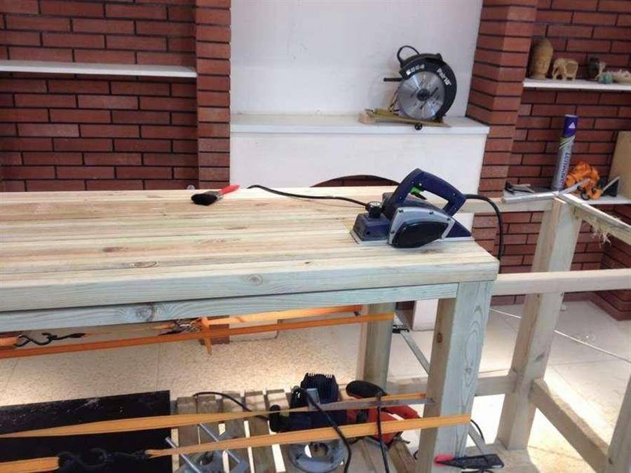 Для создания своими руками верстака в гараже из дерева не требуется особых усилий и навыков обращения со сварочным аппаратом. Набор инструментов минимален (электрический лобзик и дрель), а сам процесс занимает гораздо меньше времени, чем изготовление металлической конструкции.