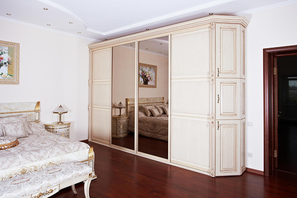 При правильной отделке и цветовом решении, шкаф-купе гармонично вписывается в классический интерьер спальни