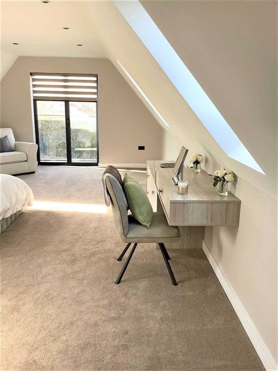 В просторной спальне хватило место для выделения зоны отдыха.