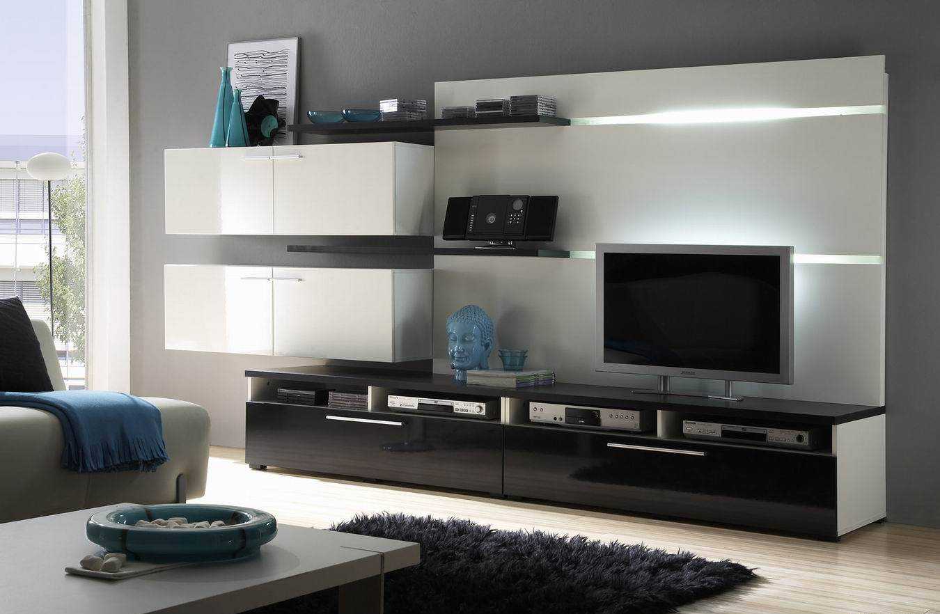 Белые глянцевые шкафы с черными боковинами отлично впишутся в интерьер стиля модерн или скандинавского. Для модерна также можно использовать черно-красное сочетание фасадов. Минимализм приветствует использование мебели такого типа. Обычно количество мебели для гостиной ограничивается длинной низкой тумбой под ТВ и одной или двумя подвесными системами хранения. Как правило, ручки отсутствуют, цветовое оформление при этом сдержанное.