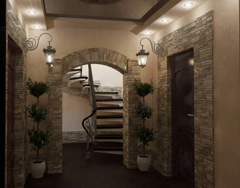 В некоторых случаях с помощью отделочных материалов достигается фактурность в интерьере. Например, достаточно легко сделать имитацию кирпичной кладки. Даже самый простой интерьер коридора будет выглядеть иначе.