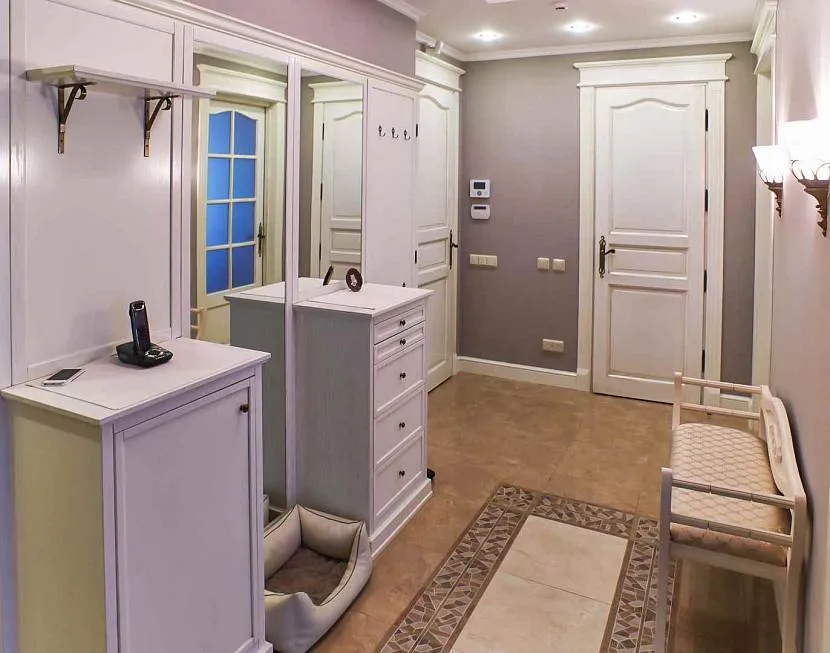 - Для прихожей выбирайте мебель, совмещающую несколько функций: обувница-скамья, шкаф с зеркалом. Это поможет сохранить свободное пространство, а пользоваться прихожей станет комфортно;
