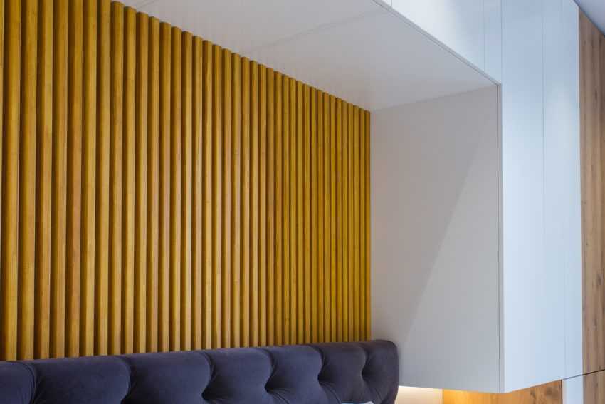 Текстура шпона полностью передает красоту и оригинальность рисунка древесины, а оценивается шпонированная стенка дешевле, чем деревянные аналоги.