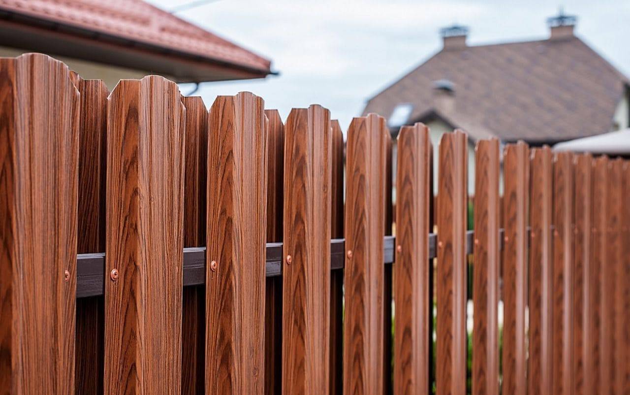 Приобретает популярность оформление металлоштакетника под дерево. Отличить имитацию от оригинала получится лишь вблизи.