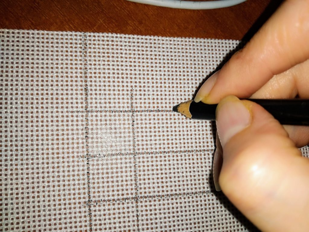 Эта подготовка потребуется именно новичкам. Прежде всего вам необходимо узнать, какие нитки используют в данной работе, а потом начинать организацию рабочего места. Рекомендуем вам использовать работы небольшого размера с несколькими цветовыми оттенками, чтобы у вас была возможность потренироваться. Итак, начертите на канве линии по горизонтали и вертикали. Или можете сразу чертить квадратики, чтобы вам было удобнее читать схему, а потом и переносить ее на полотно.