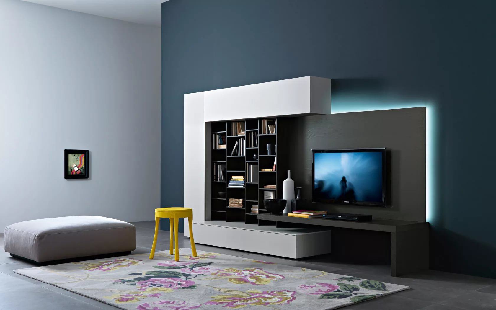 Одна из самых популярных и практичных конструкций среди стенок является конструкция, состоящая из модулей. Такие модули могут быть разной высоты, размеров их легко менять местами, создавая целостную композицию, обновляя при этом интерьер гостиной. Модульные стенки имеют большое количество моделей разнообразных по: