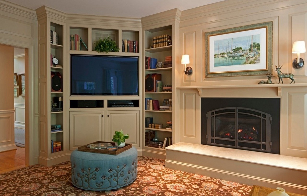 Но если в вашей гостиной комнате достаточно свободного пространства, то можно подумать и об угловой модульной стенке. В качестве углового модуля может выступать и платяной шкаф, и тумба для ТВ. Все зависит от вашего желания и модели мебели.