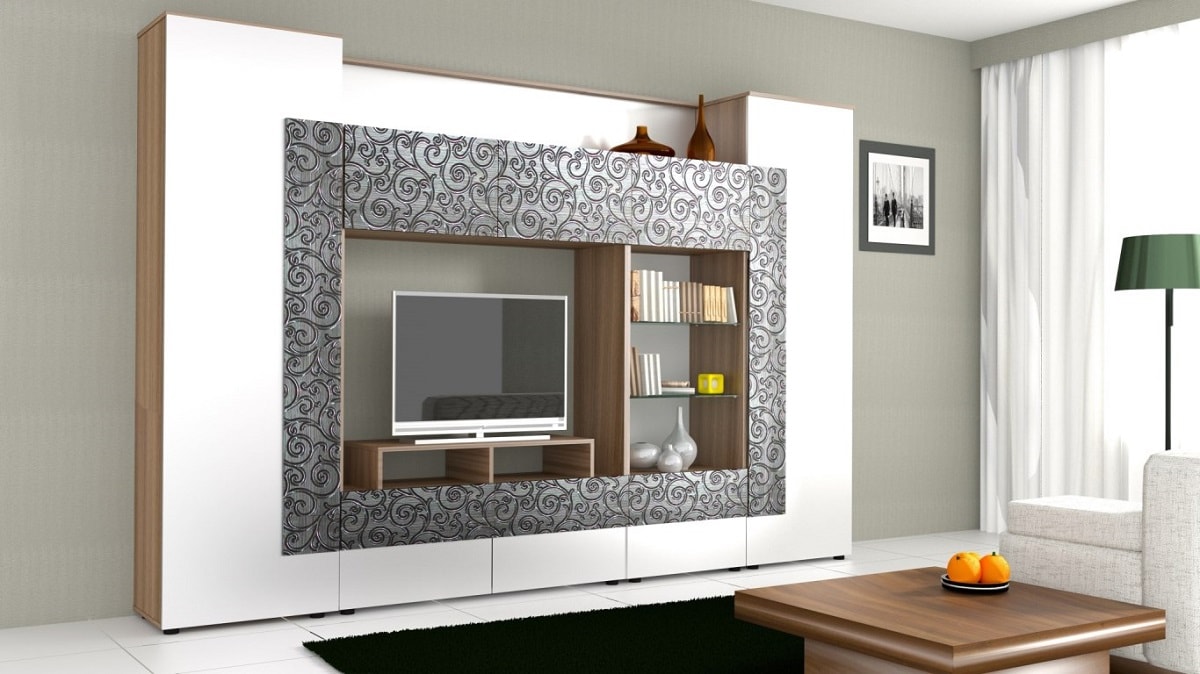 Приобретая модульную стенку в гостиную комнату, вы ничем не рискуете, а наоборот получаете полезный и практичный предмет мебели. Такая стенка может включать в себя: