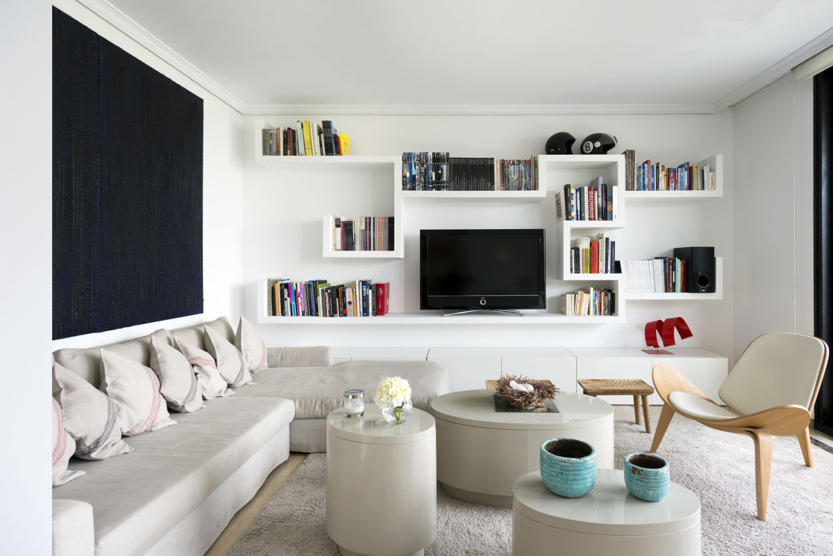 Классикой в плане цветовой гаммы является белый цвет. Стеллажи и шкафы белых тонов достаточно популярны в наше время, ведь выглядят не только эстетично, но и довольно современно, минималистично. Что особенно приятно, белоснежная мебель выглядит более легко, что позволяет визуально расширить пространство небольшого помещения.