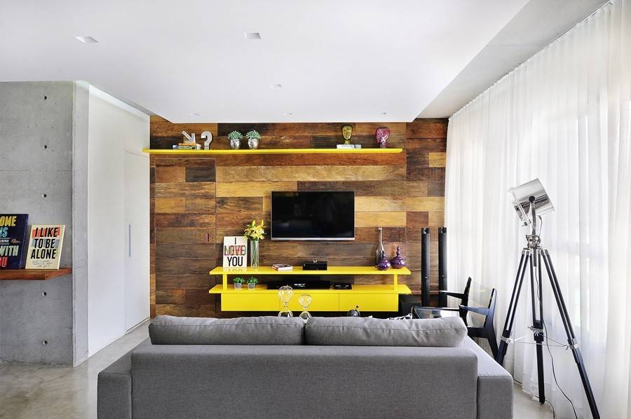 - Навесные мини стенки. Одни из самых специфичных разновидностей мини стенок. Они, как правило, вообще не имеют элементов, которые установлены на полу, все до единого сегменты находятся на стене в подвешенном состоянии. Такие стенки прекрасно смотрятся и практически не занимают полезное пространство гостиной.