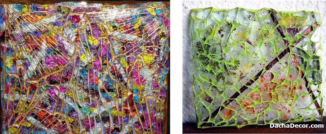 приемов декупажа, хотя здесь тоже присутствует стекло, а рисунок состоит из