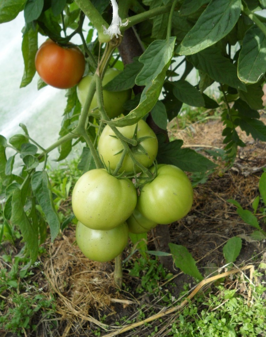 - Постепенное увеличение слоя мульчи в течение всего сезона, заменяет многие виды подкормок так как каждый новый слой скошенной зелени питает корни томатов полезными веществами.