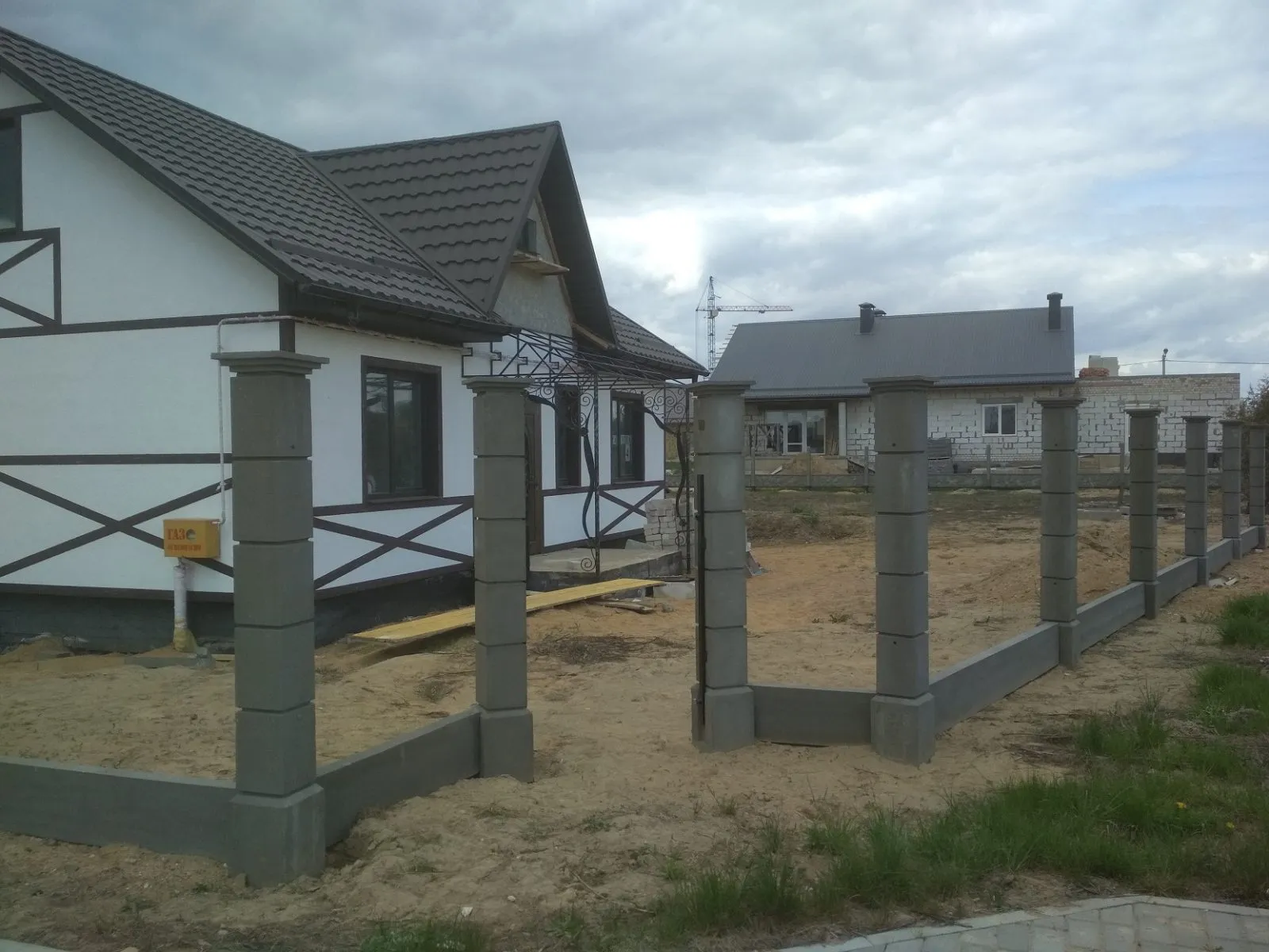 Фото: фундамент и столбы ограждения выполнены из монолитного бетона