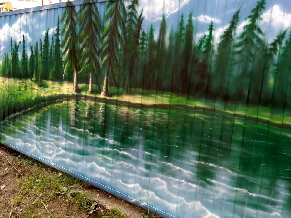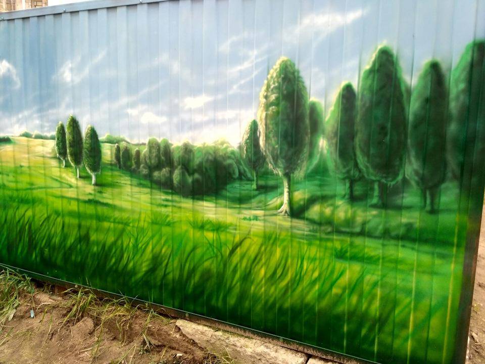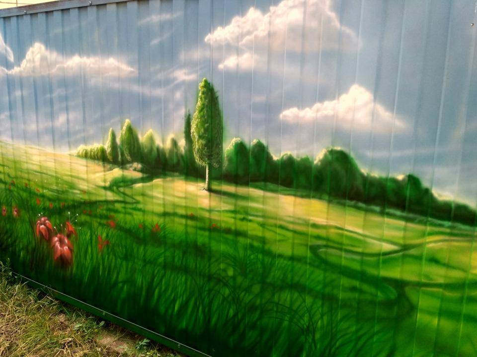 Аэрография – это современный метод нанесения рисунков на ограждение с помощью специального приспособления – аэрографа. Краска распыляется под давлением сжатого воздуха, поэтому она отлично ложится на поверхность любой текстуры.