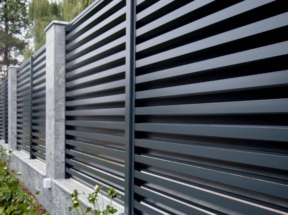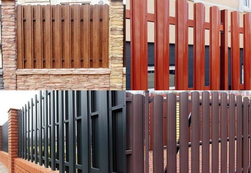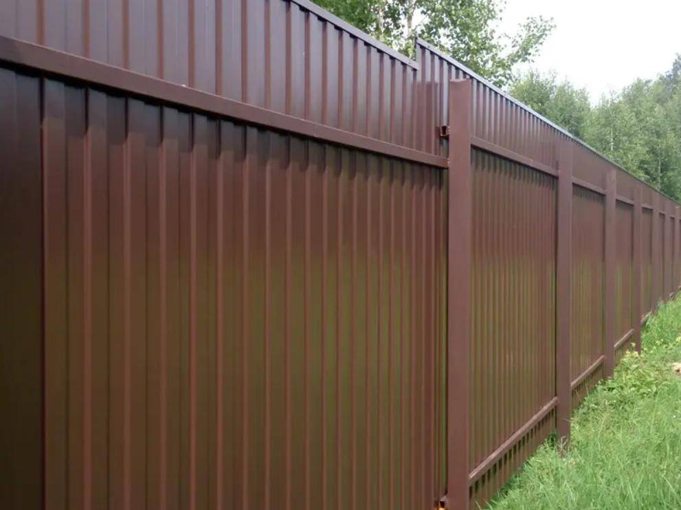Металлическая вариация деревянного ограждения с повышенной прочностью и долговечностью. Полностью блокирует пыль и ветер, снижает шум улицы, защищает от воров и бродячих животных. Хорошо вписывается в городской или загородный ландшафт, сочетается с большинством современных построек.