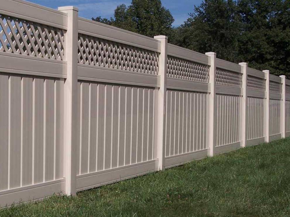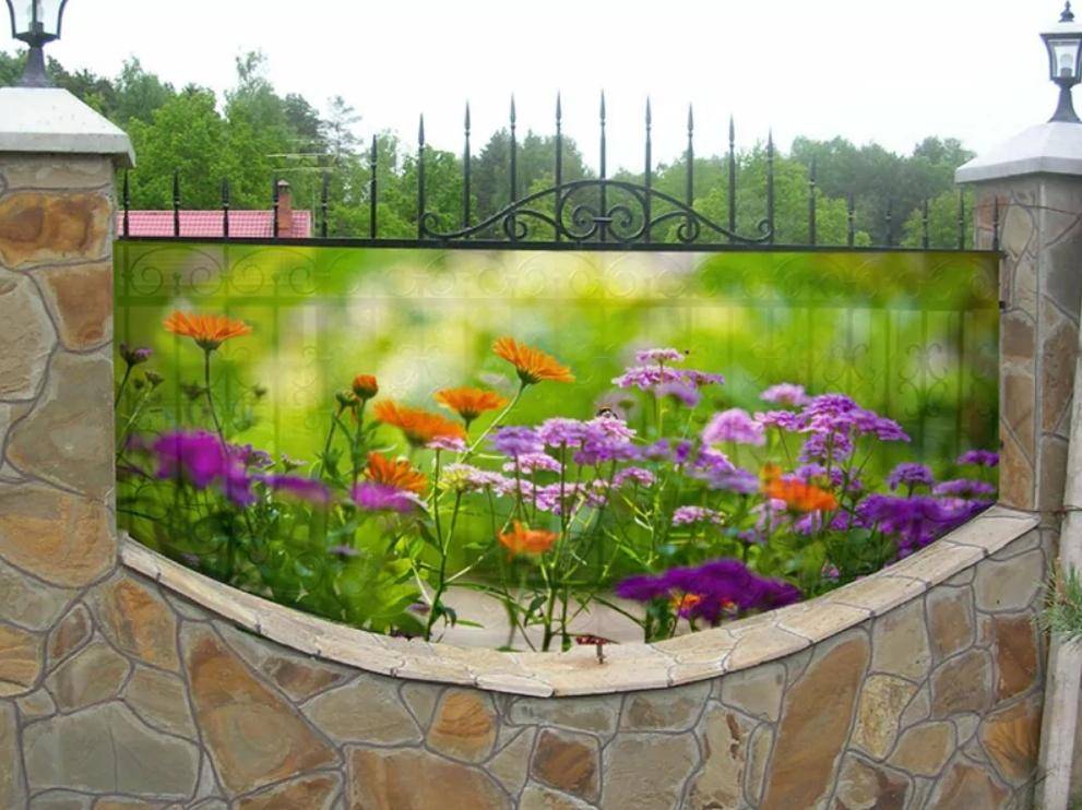 Новый материал для ограждений на основе армированного ПВХ. Натягивается на металлический каркас, может крепиться поверх уже построенного забора для улучшения внешнего вида. Требует профессионального монтажа, продается в рулонах и листах. Можно подобрать варианты с рисунком или однотонные, с различными цветовыми эффектами. Подходит для современных строений с глянцевой облицовкой, плохо сочетается с деревом, красным кирпичом и натуральным камнем.