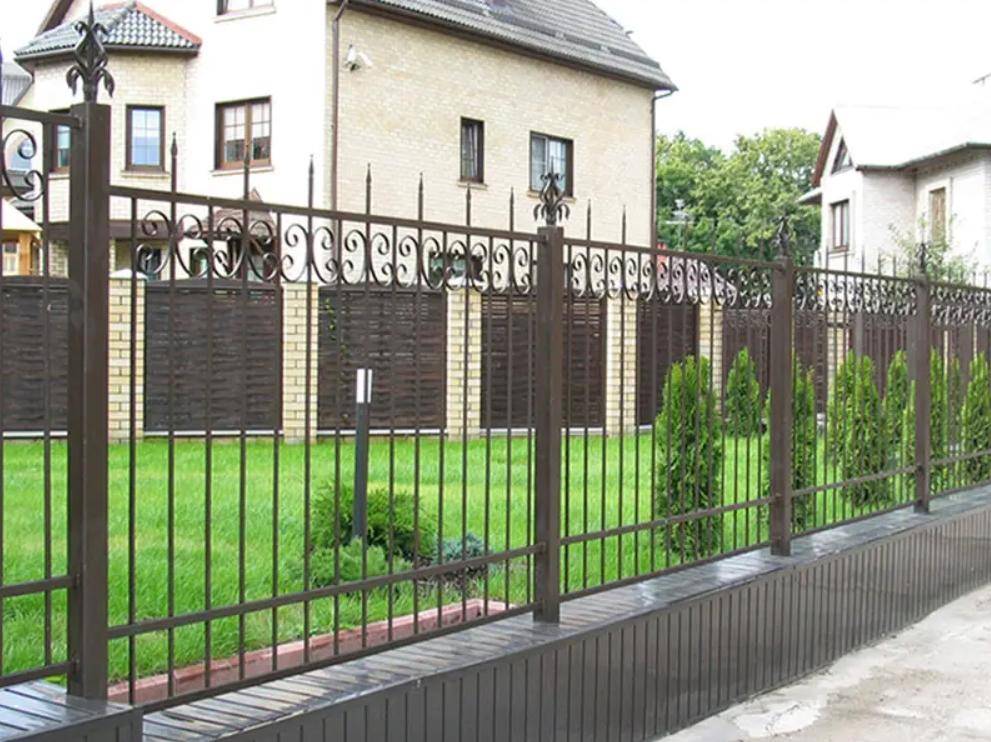 На заметку! Для изготовления ограждений используют чугун, алюминий, черную и нержавеющую сталь, оцинкованный металл, профнастил, проволоку, прутья, металлическую сетку.